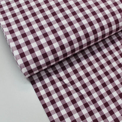 Dressmaking Cotton Gingham Fabric - Mulberry Purple and White