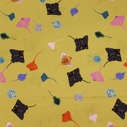 Another fabulous print from Alexander Henry featuring gorgeous pale blue turtles swimming on a dark blue background. In 100% cotton this Alexander Henry fabric can be used for dressmaking AND quilting. For children and adults alike.