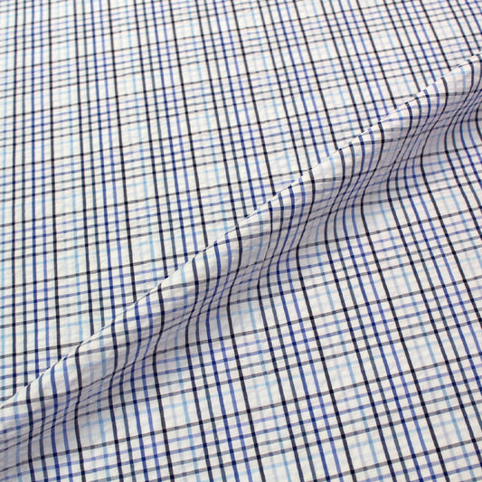 Gorgeous striped seersucker fabric featuring a narrow grey blue and white stripe. Seersucker in 100% cotton is perfect for summer dressmaking and this would make a lovely dress or blouse.
