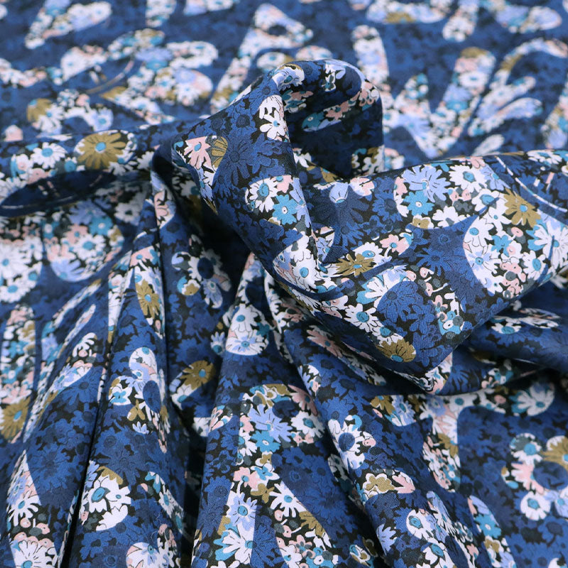 A new liberty print for AW24 Flower Power is a high quality blue cotton lawn which is both soft and silky. It would make a beautiful blue dress, skirt, blouse or luxurious nightwear. Liberty Tana Lawn™ Cotton can also be used for quilting.