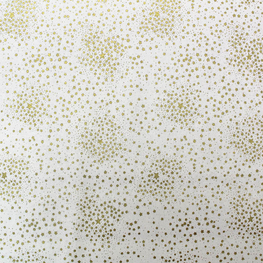Gorgeous Christmas fabric in white featuring gold stars of different sizes all on a white background. In high quality 100% cotton this is perfect for Christmas crafting, patchwork and quilting.