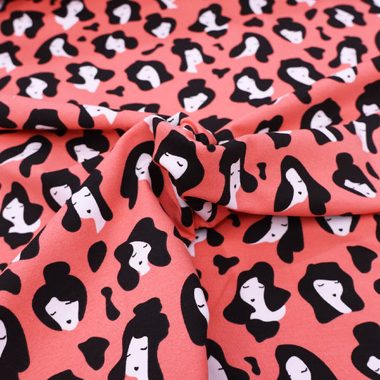 A great fun sweatshirt fabric featuring black and white faces on a gorgeous green background. In high quality 95% cotton sweatshirt fabric with a cosy brushed back, it is perfect for sweatshirts and loungewear.