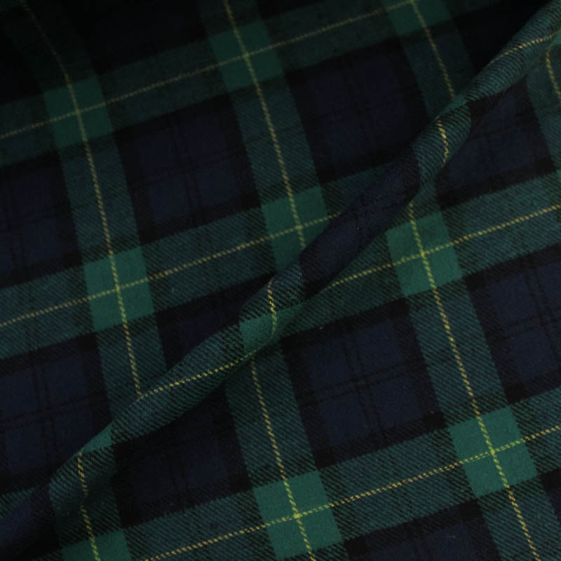 This is a super cosy brushed cotton flannel fabric in a very smart navy and green check. It's slightly heavier weight than a cotton shirting, remember your flannel pyjamas as a child... it's exactly like that! This would the perfect Winter Pyjamas for the whole family. A beautiful dressmaking brushed cotton tartan fabric with potential as a quilting fabric too!
