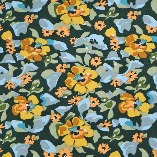 A gorgeous jersey fabric featuring a beautiful watercolour floral design in shades of red, pink, orange and blue, which is digitally printed onto this lovely quality cotton rich jersey. It would make a fantastic long sleeved top or T shirt or even a figure hugging dress.