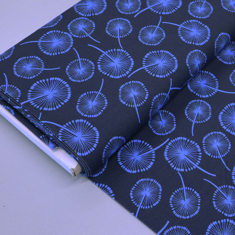 A lovely jersey fabric featuring a large but subtle dandelion print outlined in a bright blue on a navy blue jersey background. With 95% cotton content and an element of stretch this is perfect for dressmaking and would make a lovely dress or top. It meets OEKO-TEX 100, the highest global standard for textile manufacturing.