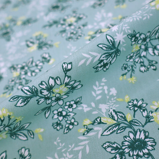 Beautiful poplin fabric featuring a dark blue and white floral print on a terracotta orange background. Poplin is perfect for spring and summer dressmaking and this would make a lovely dress, blouse or top.