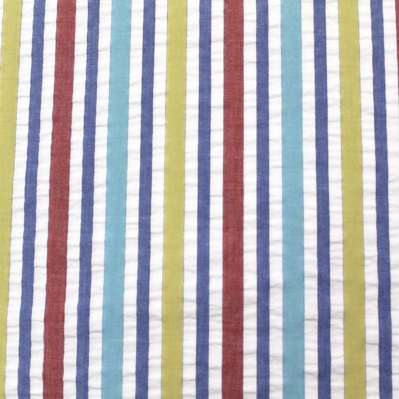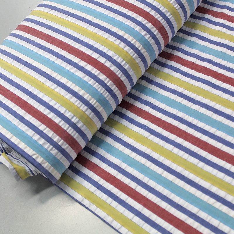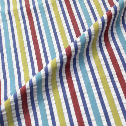 Striped Seersucker Fabric - Blue, Red and Yellow