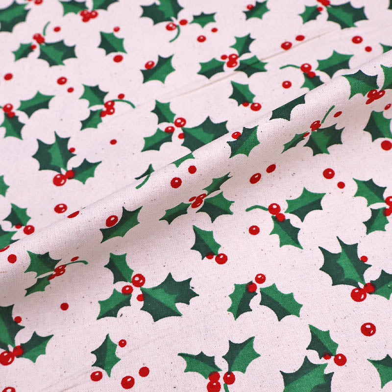 Gorgeous Christmas fabric featuring sprigs of holly on a cream background. In 100% cotton it is ideal for patchwork, quilting and Christmas crafting.