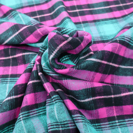 A gorgeous brushed cotton fabric in a pale pastel orange and lavender check. It would make lovely pyjamas, nightwear or even a shirt. In 100% cotton it is super soft and snuggly perfect for autumn and winter dressmaking. Shop the brushed cotton check collection for other colours.