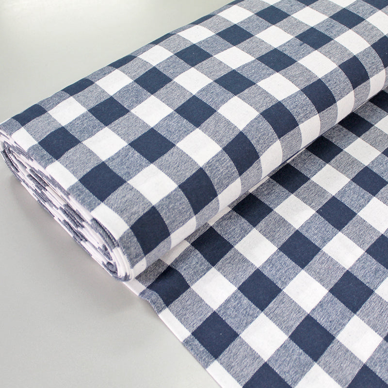 Gorgeous soft brushed cotton gingham fabric in dark blue and white. This is perfect for dressmaking and would make incredibly cosy pyjamas.