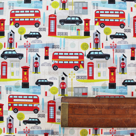 Gorgeous and pretty floral cotton poplin fabric featuring red, pink, blue and yellow flowers on a a green and cream background. Betty is a fun floral print named after Betty White as she seemed pretty fun too. This version features red and orange flowers with the occasional turquoise ones too. The fabric is 100% Cotton Poplin making it perfect for bunting, dressmaking and quilting projects.