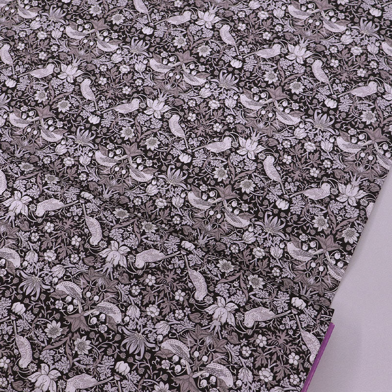 Monochrome Liberty Fabrics Cotton Lawn Fabric with some glitter detail - Strawberry Thief
