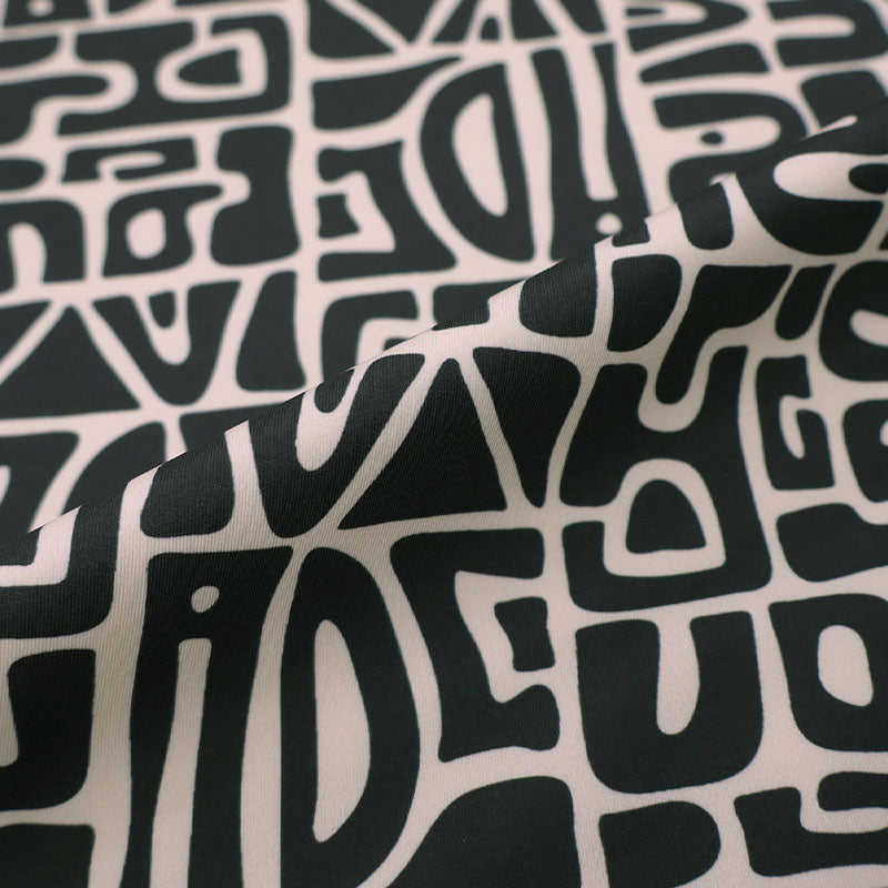 Fantastic sportswear fabric featuring a modern abstract design in black and cream. In high quality polyester with 22% stretch content, this is perfect for leggings, trousers and loungewear.
